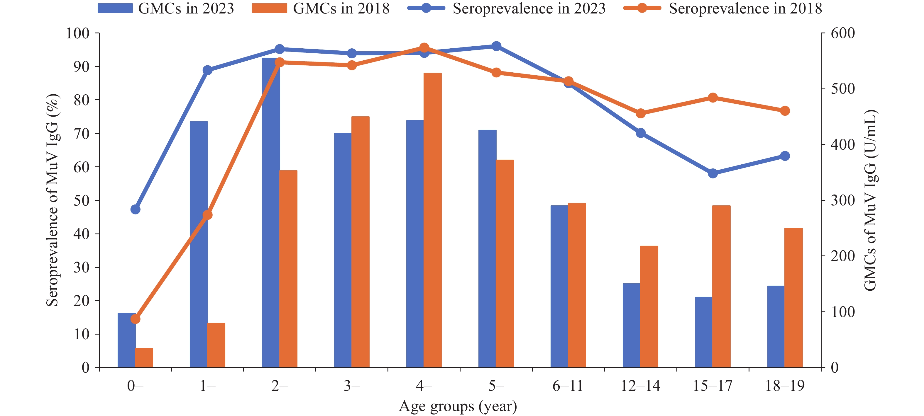The Measles-Mumps-Rubella (MMR) vaccine plays a crucial role in preventing mumps. Before the implementation of the two-dose MMR vaccine policy, baseline data on mumps virus antibody seroprevalence and geometric mean concentrations (GMCs) among children and adolescents in Fujian Province were available.