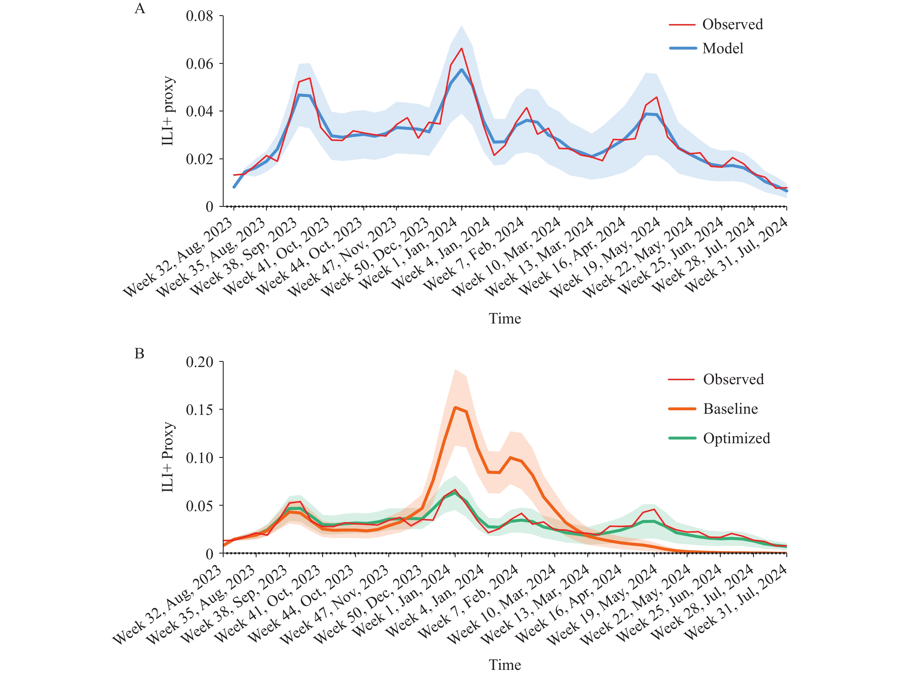 This study utilized influenza surveillance data from Shenzhen to develop an age-stratified compartmental model for epidemiological simulations, evaluating the disease burden prevented by influenza vaccinations among school-aged children during the 2023–2024 season. Additionally, an optimization framework was developed to design strategic vaccination schedules while considering the importance of maintaining stable public health policies over time.
