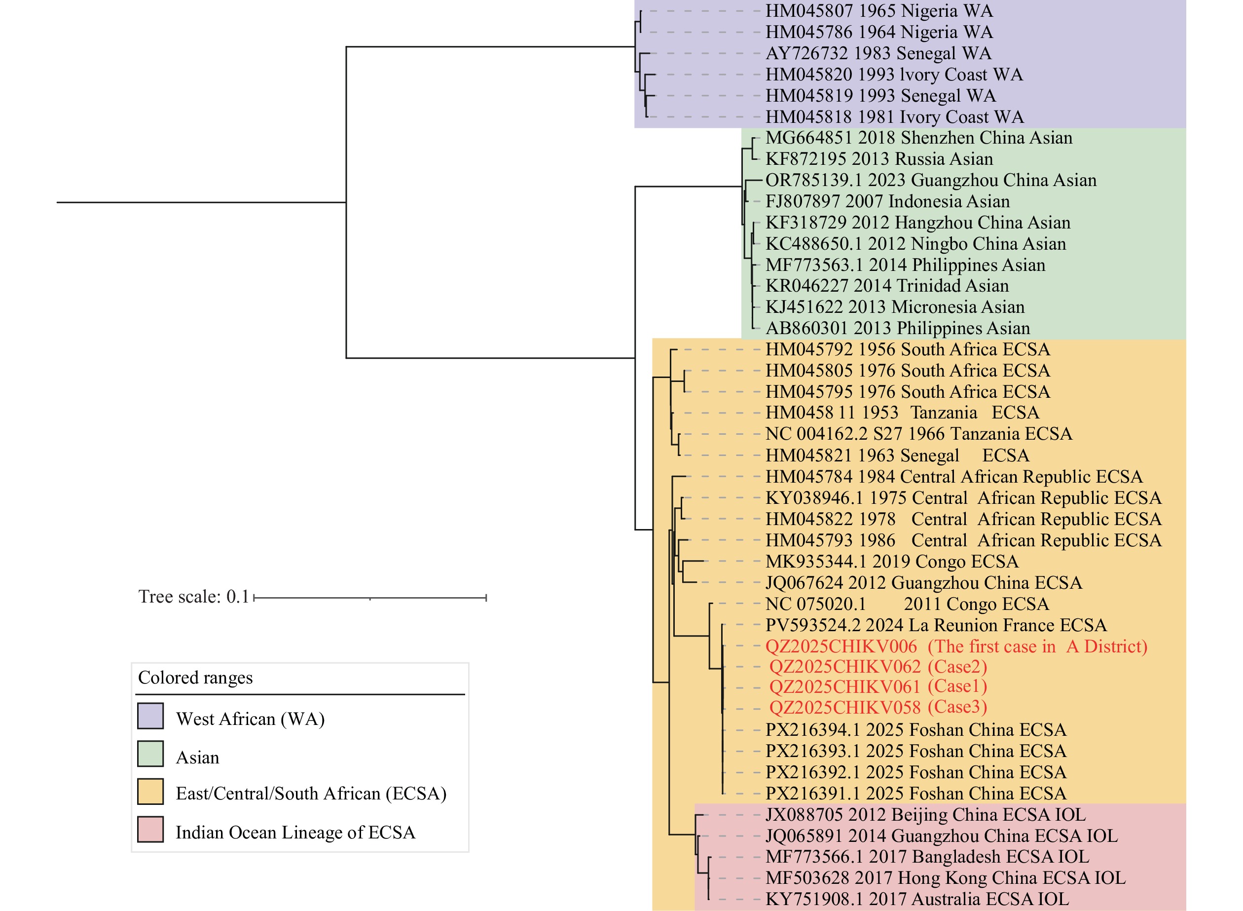 In regions with established Aedes mosquito populations, imported CHIKF cases may trigger import-driven local transmission if vector control measures are delayed or inadequately implemented. During epidemic seasons, upon identifying imported cases, public health authorities should immediately map the patients’ viremic-phase activity areas, delineate high-risk zones, and implement targeted mosquito elimination measures.