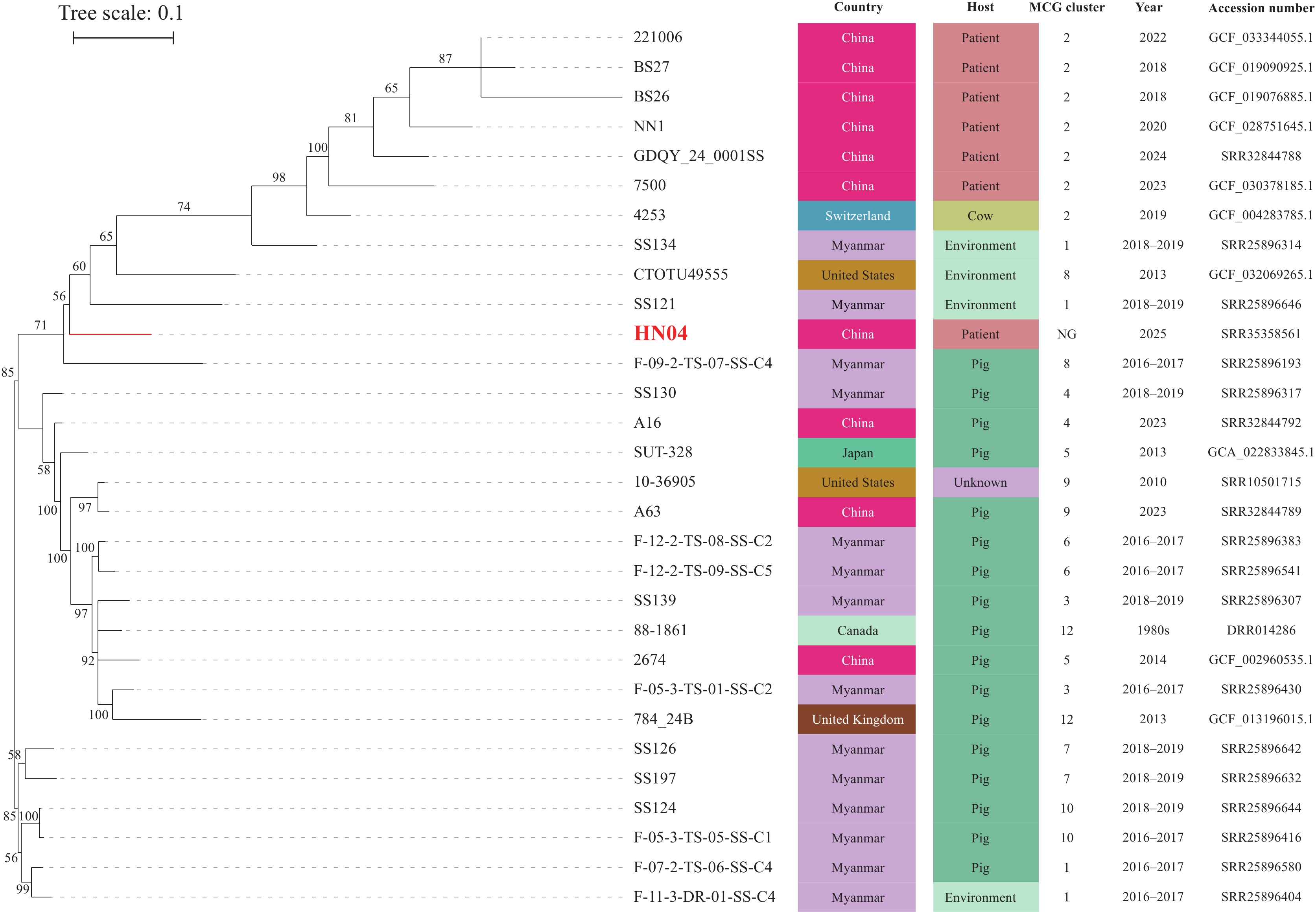 This study confirmed the first documented human case of Streptococcus parasuis infection in Henan Province through comprehensive genetic sequencing. Phylogenetic analysis revealed that this strain exhibits substantial genetic divergence from previously isolated domestic strains. Notably, the patient reported no documented history of livestock contact, indicating that environmental exposure may represent a critical transmission route.