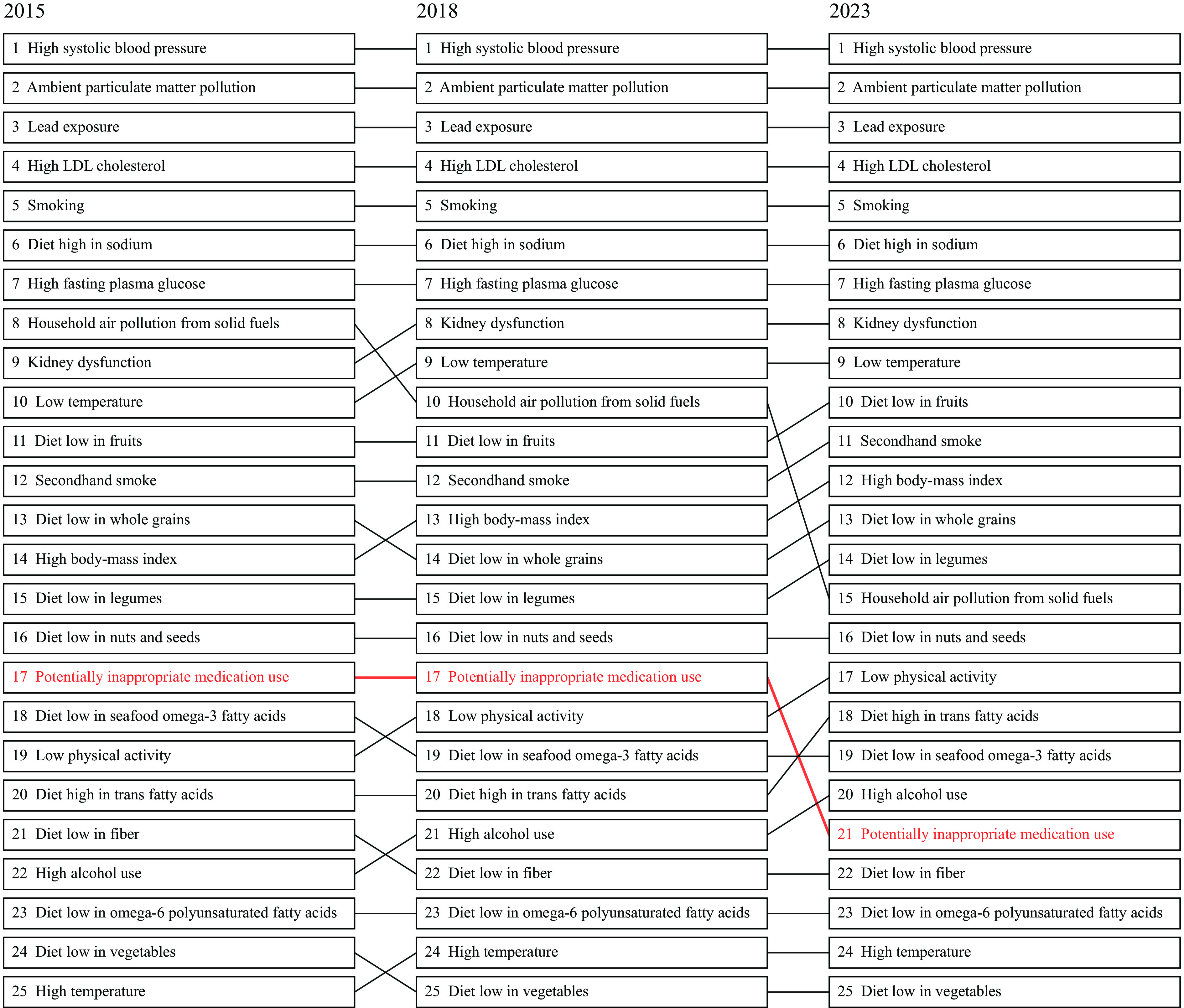 Figure 1.Ranking of the top 25 risk factors by attributable cardiovascular disease deaths in China, 2015, 2018, and 2023 (both sexes).