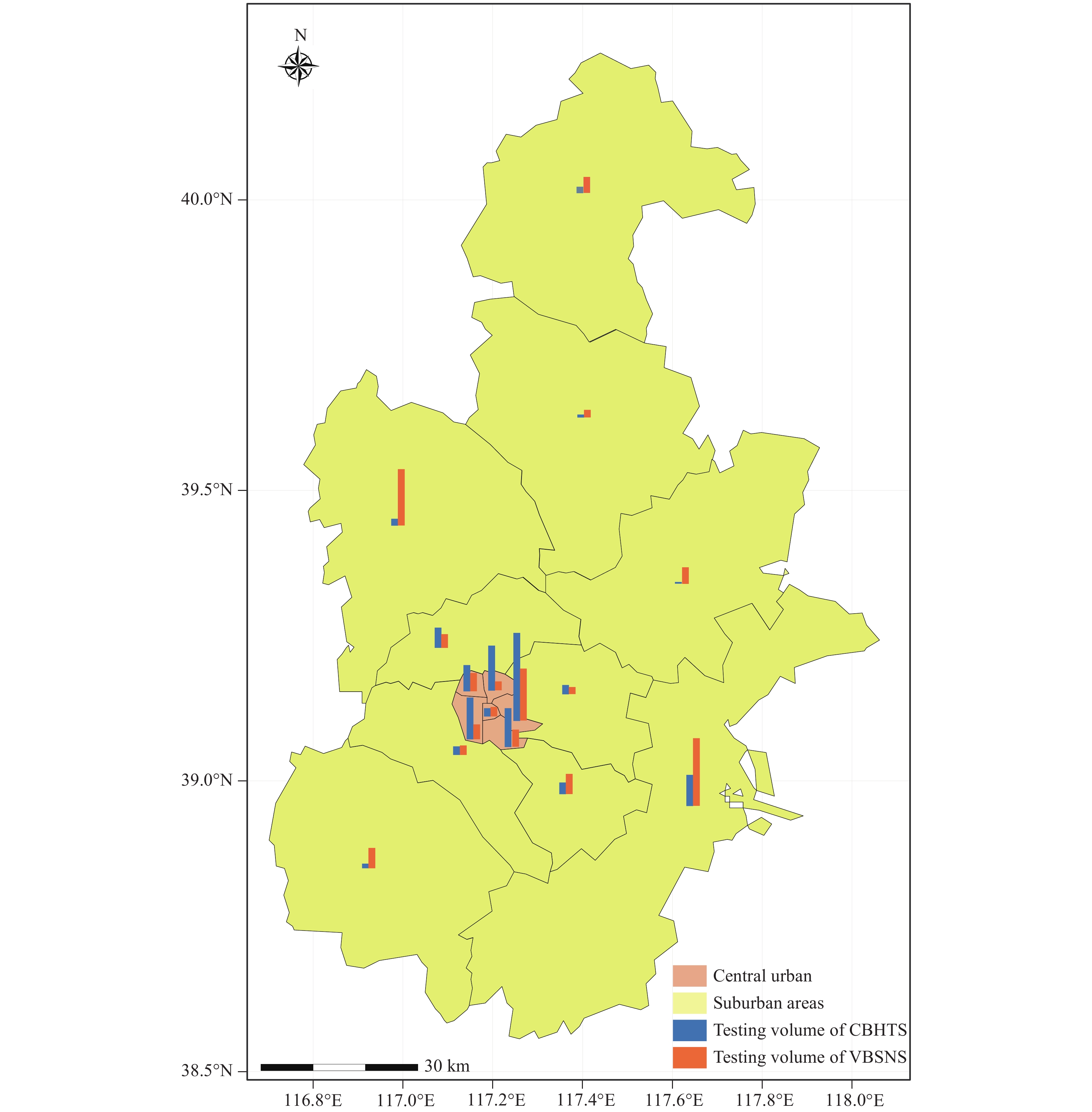 The results regarding testing efficiency underscore the significant role of VBSNS in enhancing access to HIV services, especially in under-resourced suburban areas. Notably, VBSNS accounted for 47.9% of the area’s total tests. Its effectiveness was particularly pronounced in remote suburban regions, where it accounted for 66.6% of all tests, markedly exceeding the reach of CBHTS. These findings highlight VBSNS’s advantage in reaching and mobilizing key populations, particularly MSM aged 50 and above.